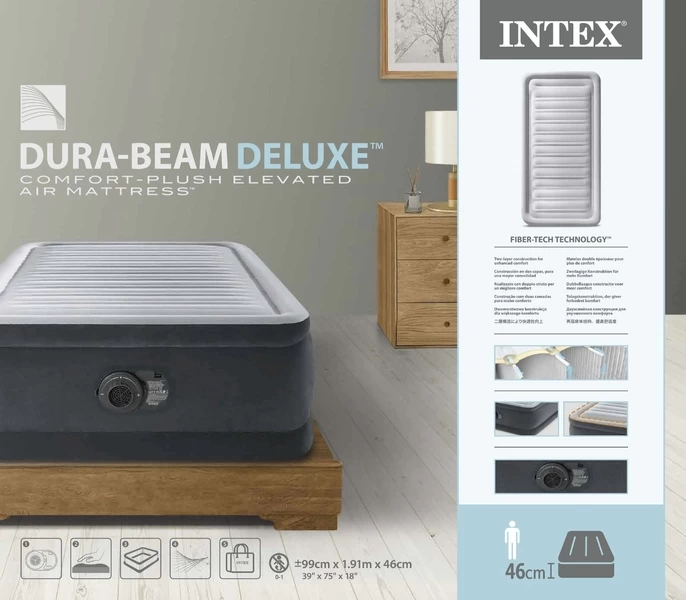 Intex Comfort Plush Hoog Luchtbed – Eenpersoons – Ingebouwde Elektrische Pomp