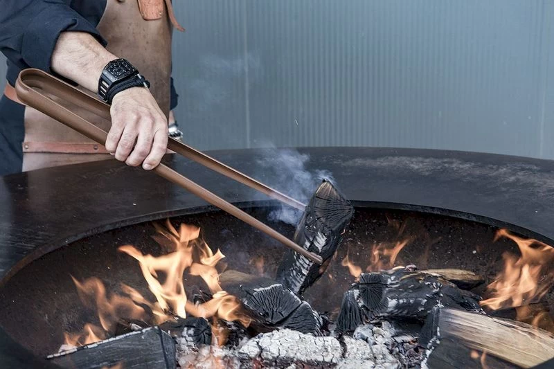 De OFYR Buffadoo set bestaat uit een blaaspijp en een tang/pook met bijpassende voet. De blaaspijp heeft een lederen greep en een siliconen mondstuk en wordt gebruikt om zuurstof in de OFYR kookunit te blazen waardoor er bij het aanmaken van het vuur sneller vlammen ontstaan en rook vermeden kan worden. Met de tang/pook kan gemakkelijk nieuw hout aan het vuur worden toegevoegd wanneer dit reeds goed brandt. Dit model is uitgevoerd in het bruin met bruine lederen grepen.
